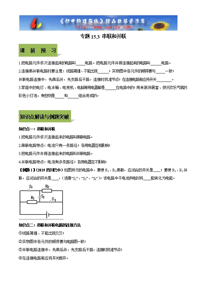 2019-2020学年九年级全一册物理精讲精练(人教版):专题15.3 串联和并联(原卷版和解析版)
