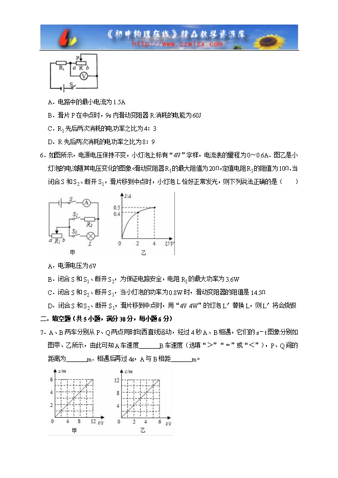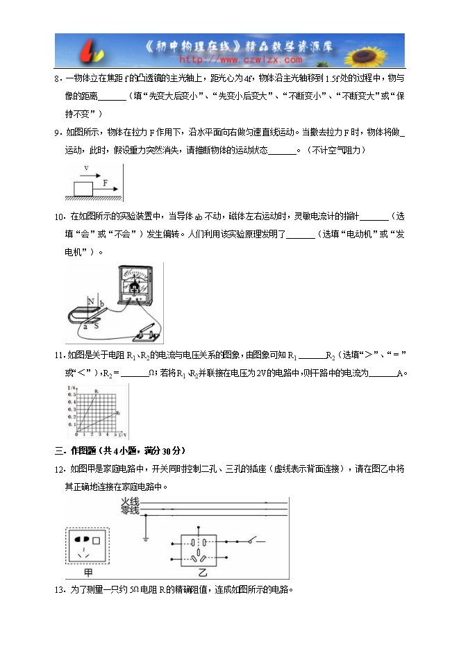 - 1121遵义市2018-2019年秋季学期九年级期末物理试题(含答案)(PDF版)