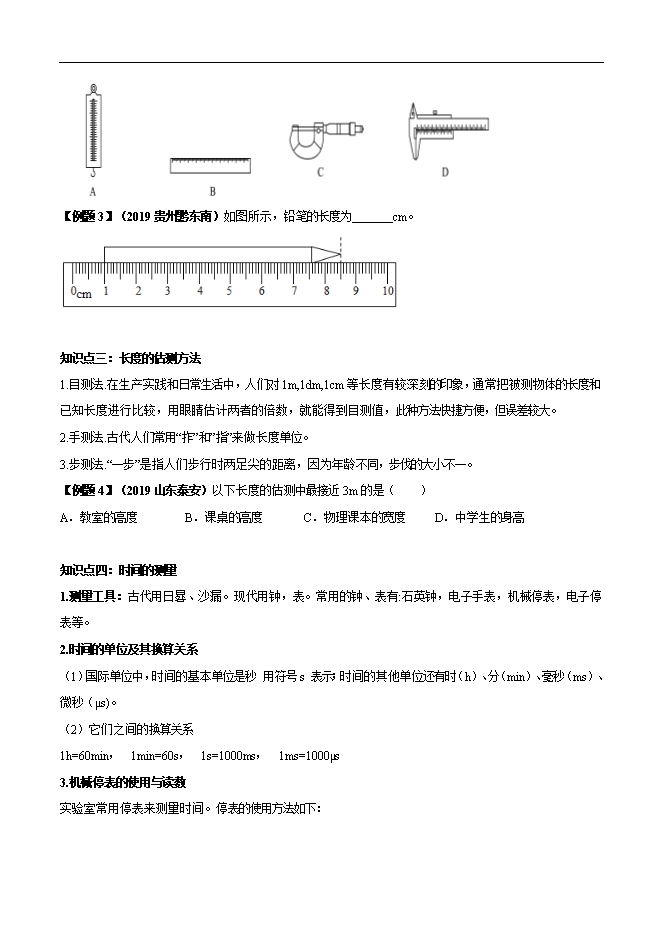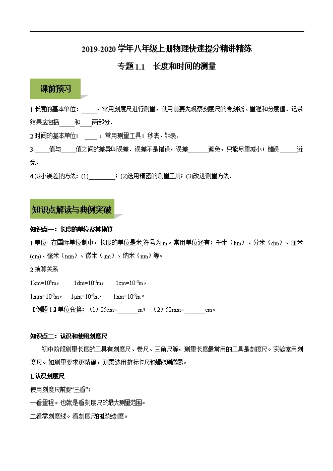 【内容简介】(人教版)2019-2020学年八年级上册物理精讲精练:专题1.1 长度和时间的测量