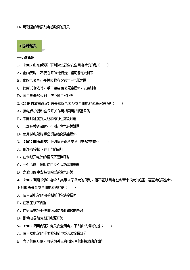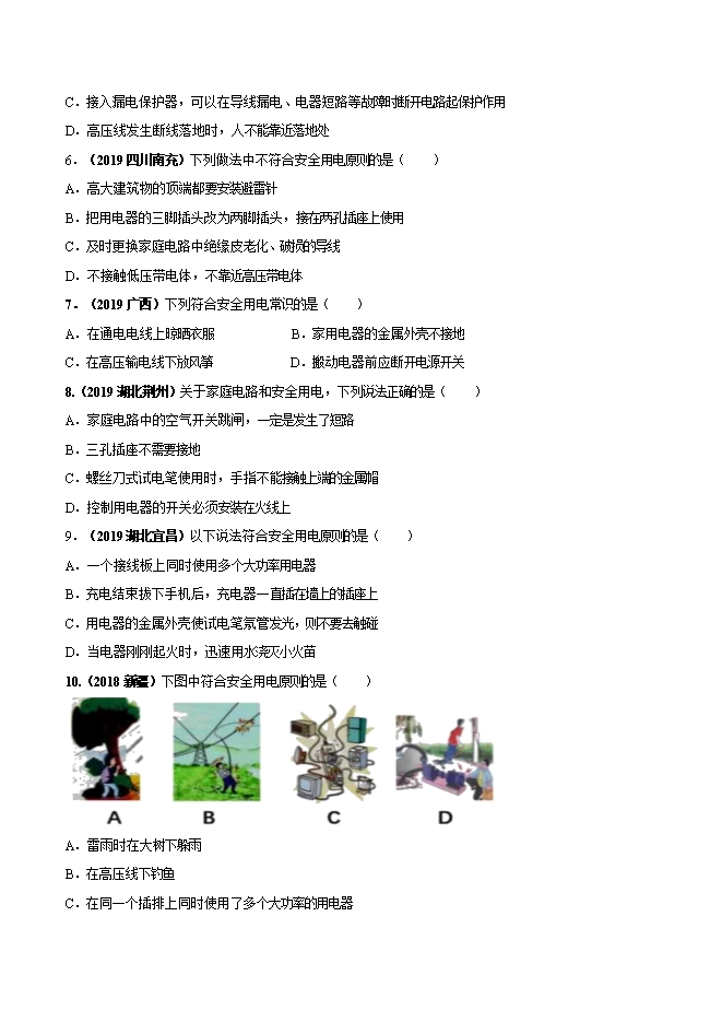- 2362021年全国中考物理真题分类汇编专题:16 安全用电(配解析)