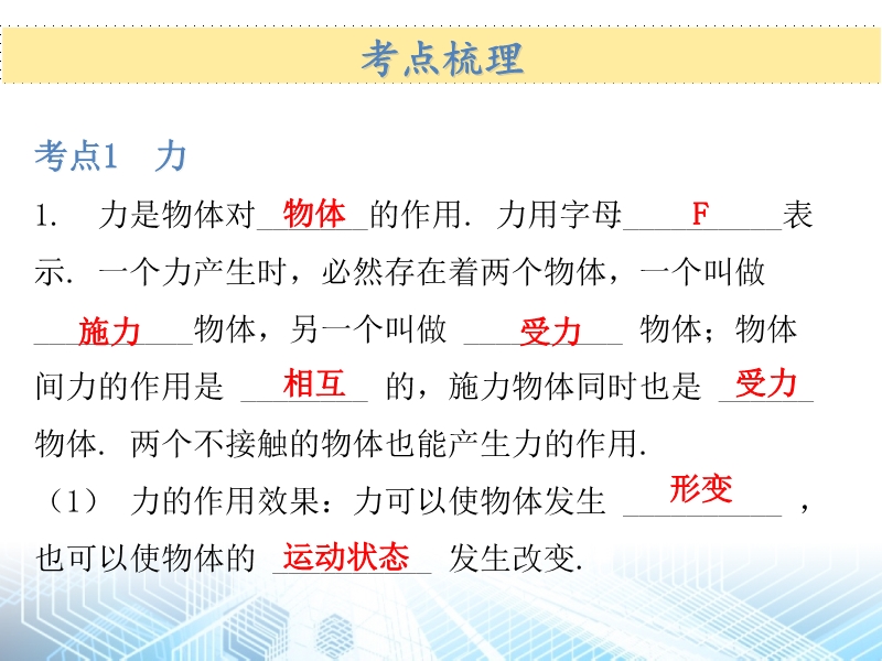 - 675【柳州专版】2020中考物理夺分复习第一篇考点过关篇课件:第06章 力和机械(课时01 力)