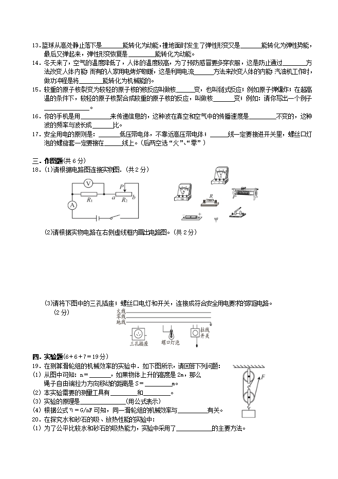 - 297广东省湛江市第二十二中学2020届九年级上学期期末考试物理试题(附答案)