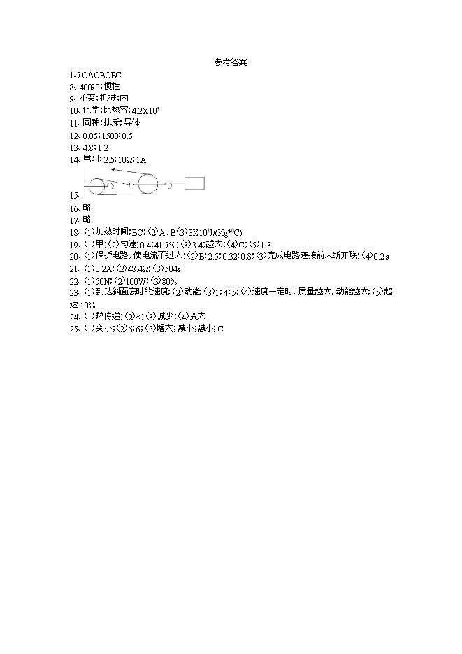 【内容简介】广东省东莞市2019-2020 学年初三上学期期末物理十三校联考试卷(沪粤版含答案)