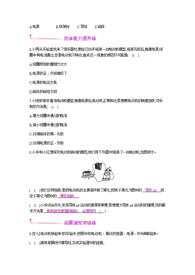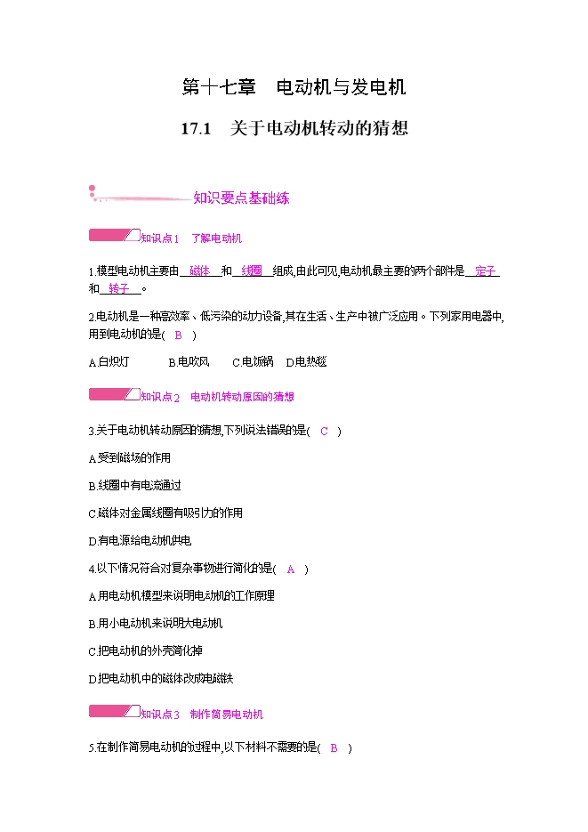 2019-2020学年沪粤版物理九年级下册(课件+精练):第十七章 电动机与发电机(共12份打包)