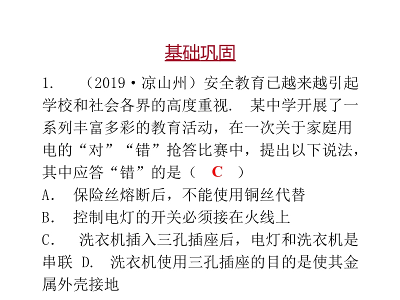 - 492024-2025人教版九年级物理《第十九章 生活用电》同步基础巩固试题及解析