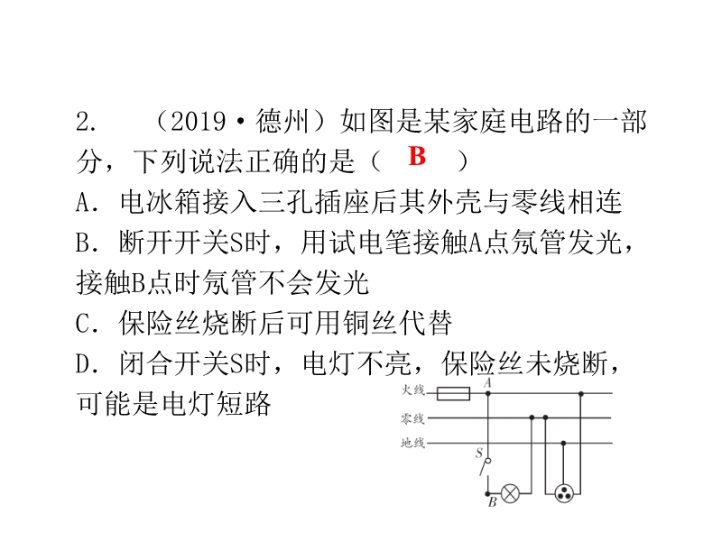 - 4212024-2025人教版九年级物理《第十九章 生活用电》同步拓展提升试题及解析