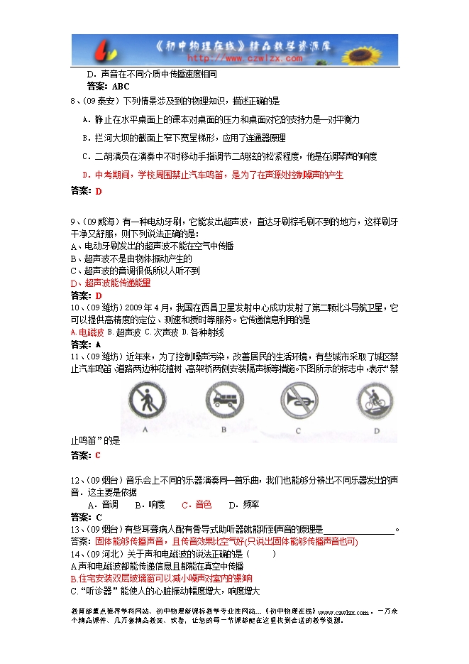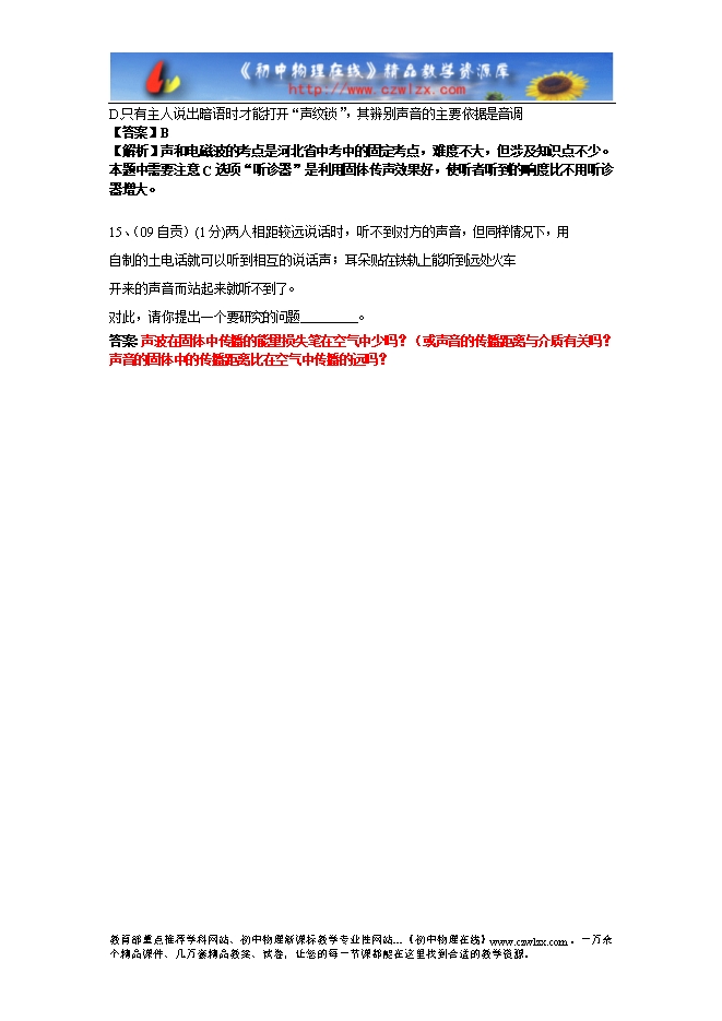 - 下一份试卷:2009年中考物理试题分类汇编:透镜