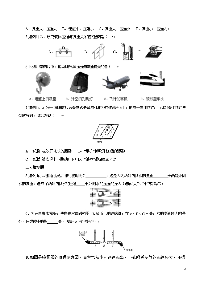 - 220专题06 气体压强与流体压强--2020-2021学年人教版八年级物理下册期中知识点串讲与专项测试(原…
