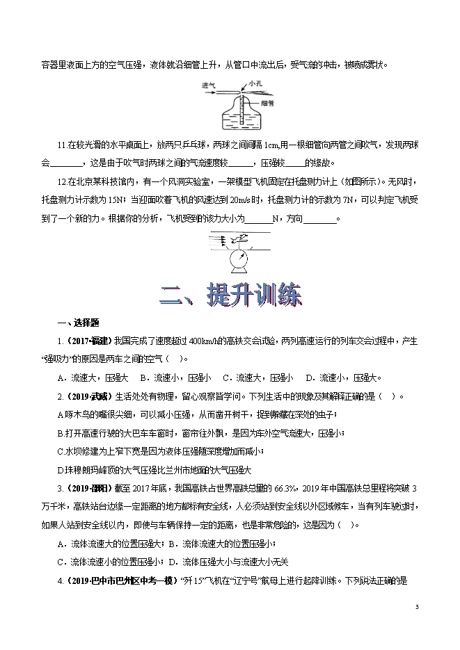 - 227专题11 大气压强与流体压强--【备战2021】中考物理精选考点专项突破题集(安徽专用)