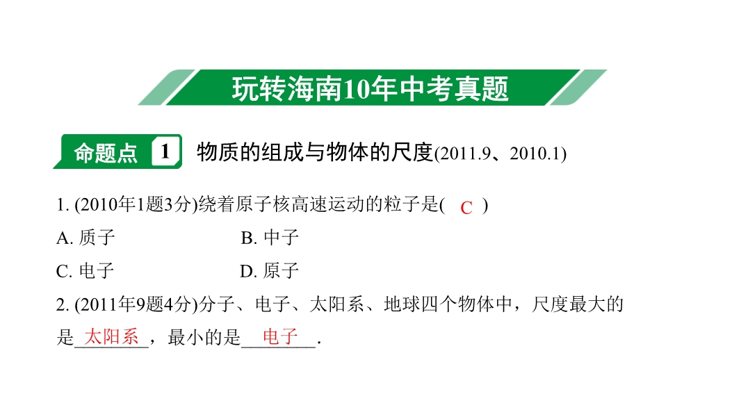 2020年海南中考物理一轮考点通关(课件+分层训练):第九讲 小粒子与大宇宙 (共2份打包)