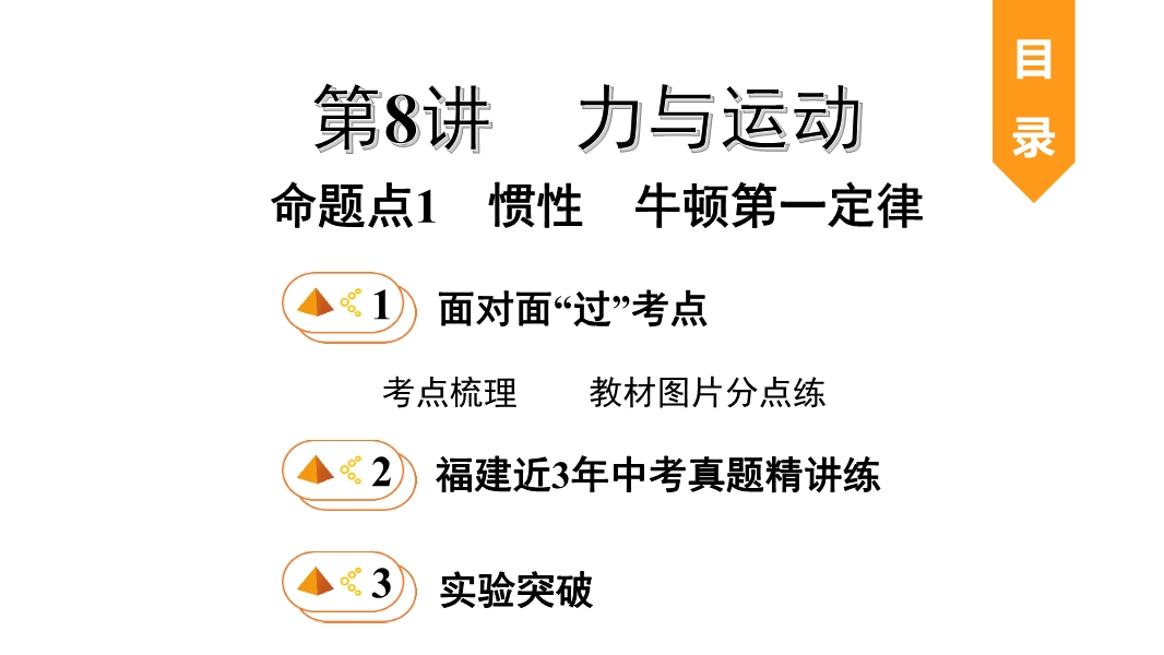 2020年福建省中考物理一轮基础考点一遍过(课件+精练):第8讲 力与运动 (共3份打包)
