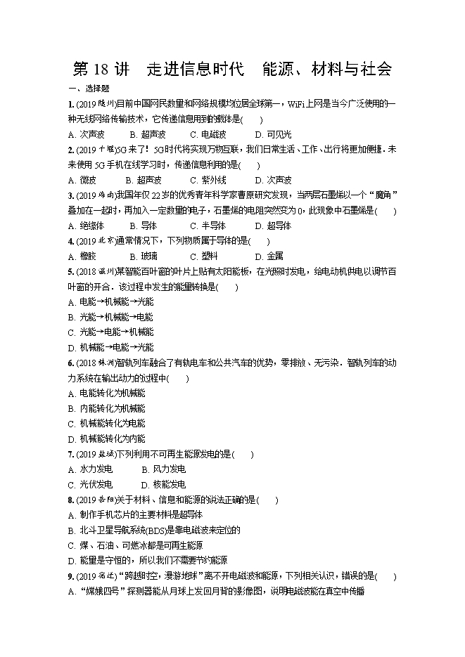 【内容简介】2020年福建省中考物理一轮基础考点一遍过(课件+精练):第18讲 走进信息时代 能源、材料与社会 (共2份打包)