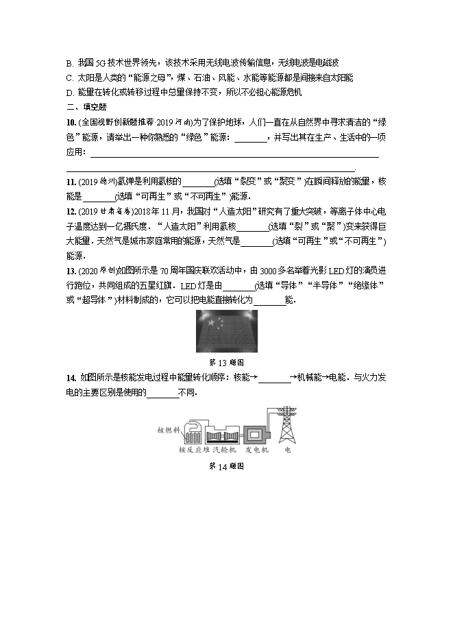 - 8192020年海南中考物理一轮考点通关(课件+分层训练):第十四讲 走进信息时代 能源、材料与社会 …