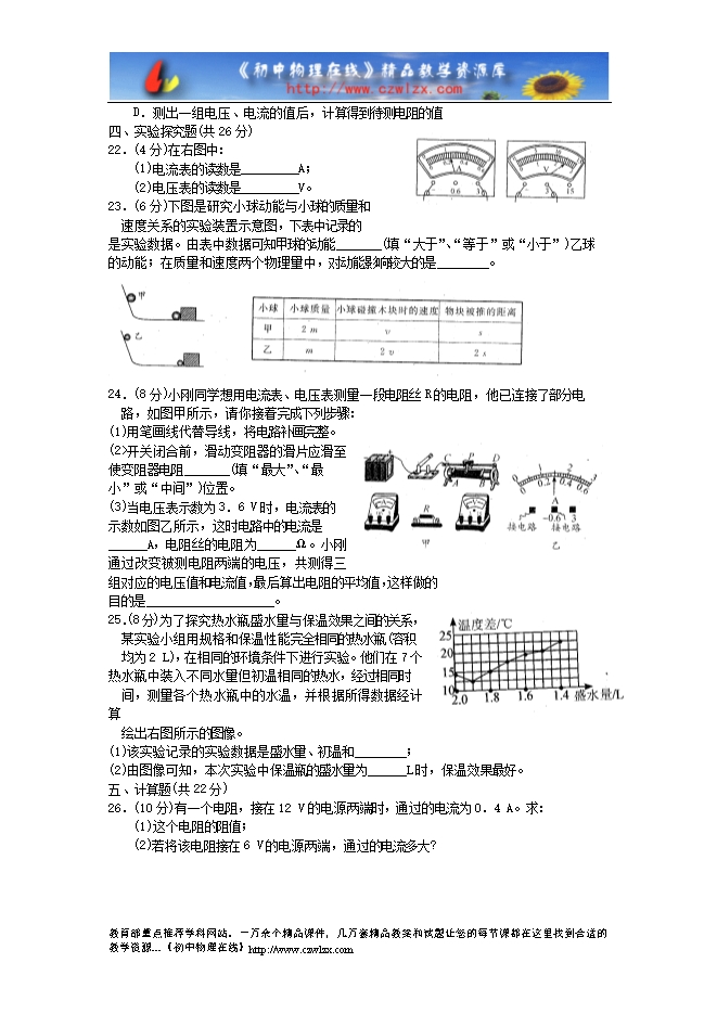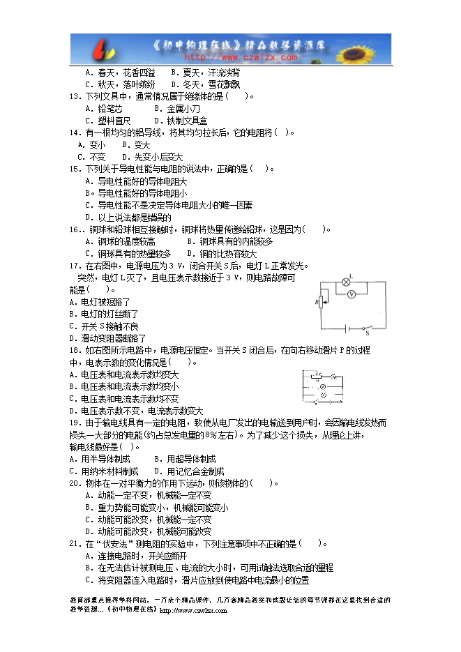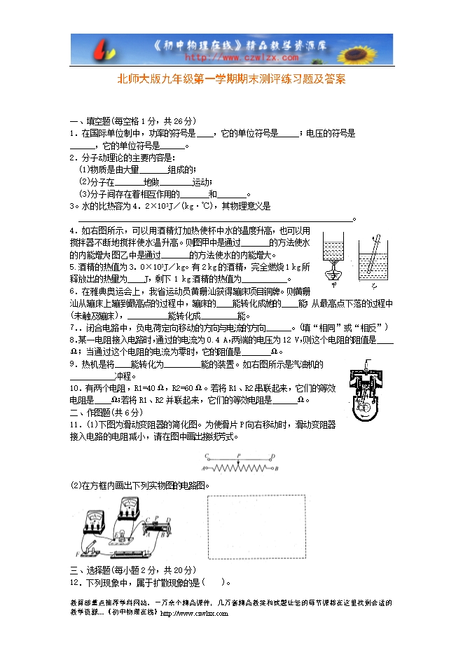 - 下一份试卷:北师大版九年级第一学期期末同步检测物理题及答案
