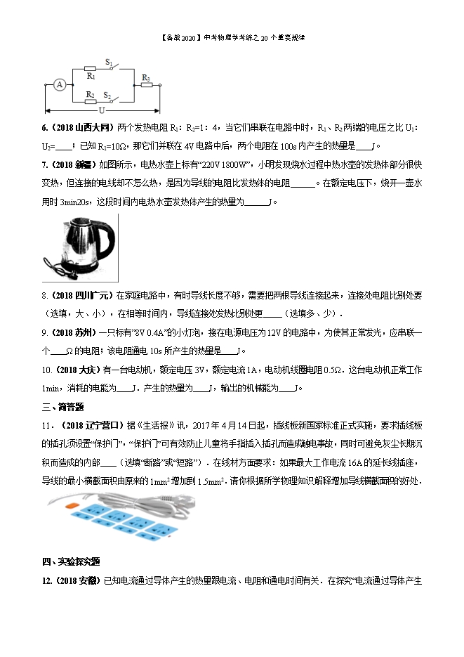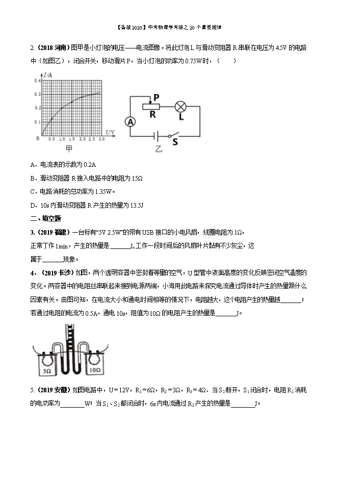 备战2020年中考物理学考练之20个重要规律:专题18 焦耳定律