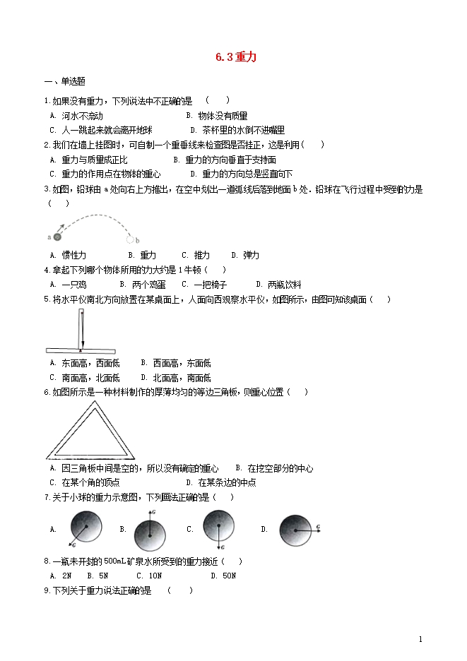2020春沪粤版八年级物理下册同步练习:《6.3重力》含解析