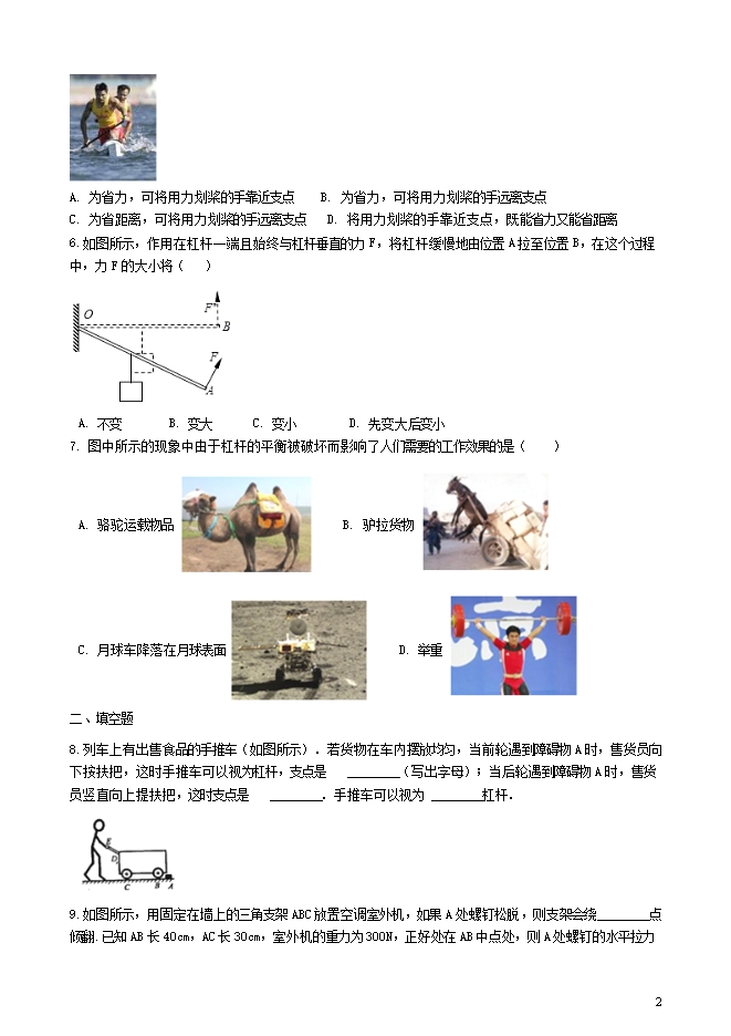 - 5832020春沪粤版八年级物理下册考点集训:6.5 探究杠杆的平衡条件(附答案)
