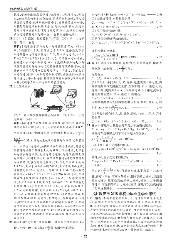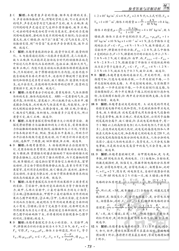 10. 在探究液体内部压强的实验中,小宇同学认为影响液体压强大小的因素有液体的密度和深度,并运用图8所示的情景对其中的一种猜想进行了实验验证。小宇验证的是液体压强和_______________的关系,实验过程中控制的变量是_______________________.