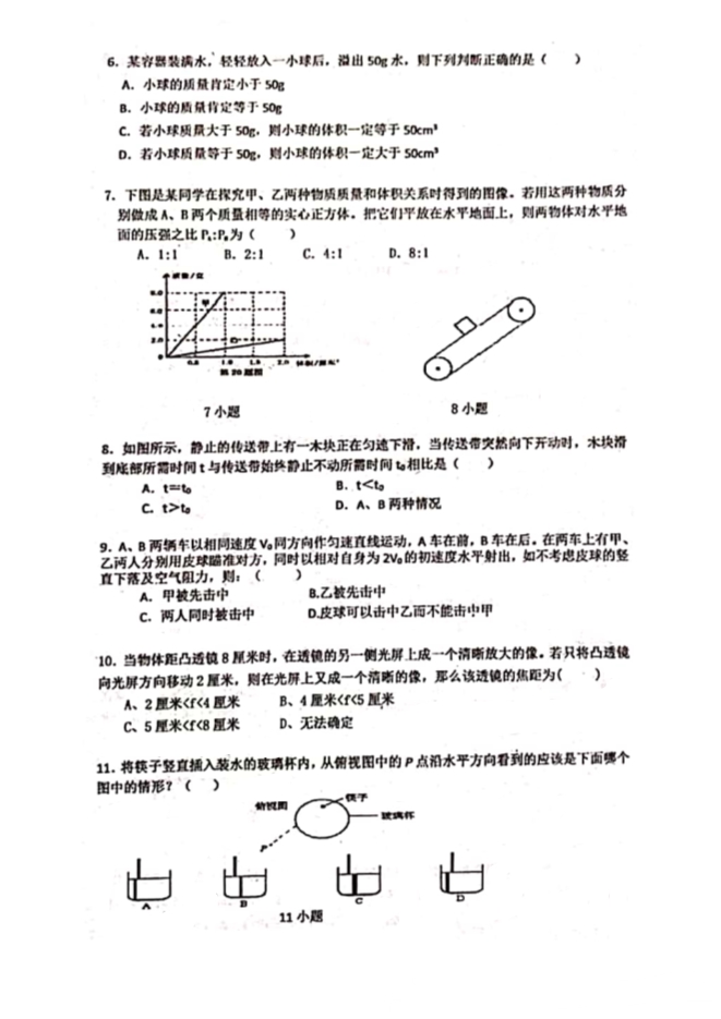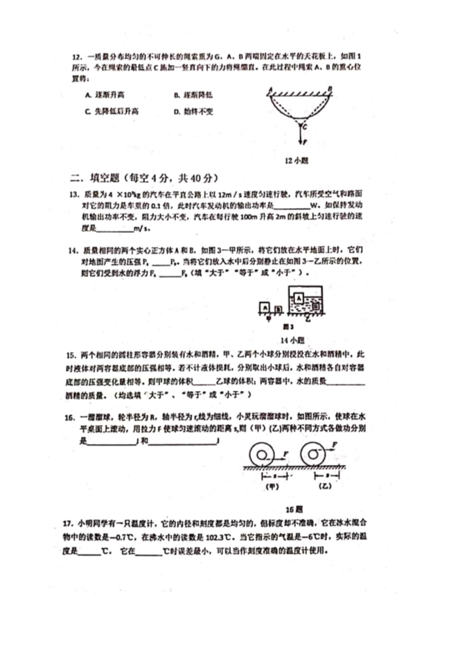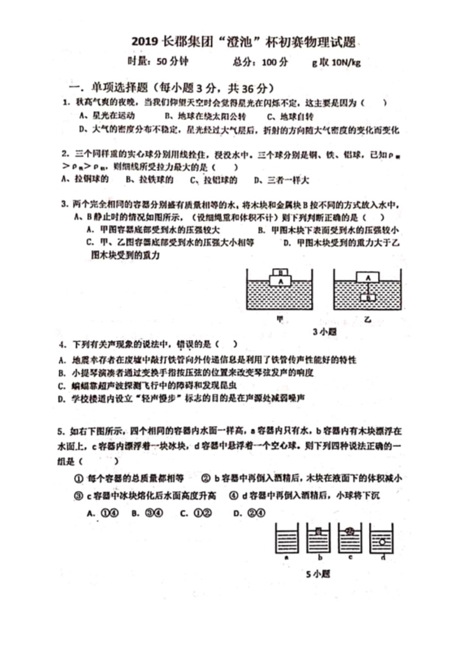 湖南省长沙市2019年长郡集团“澄池”杯学科竞赛初赛物理试题卷(PDF版无答案)