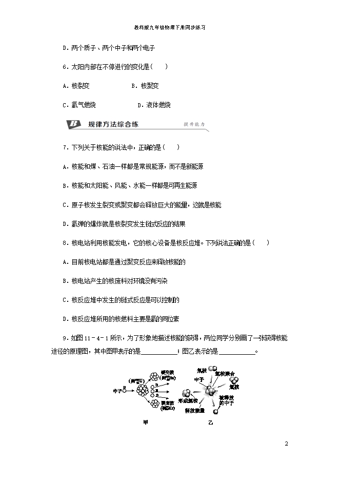 - 下一份试卷:教科版九年级物理下册同步练习:11.4核能2