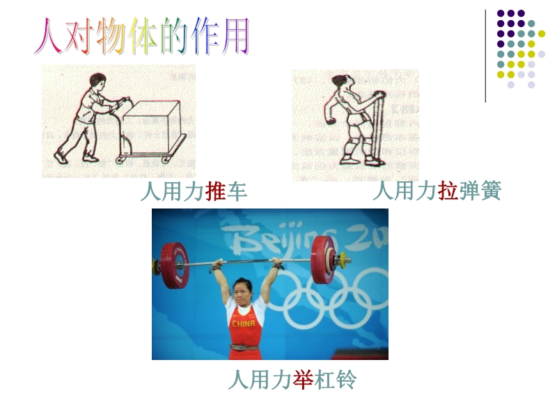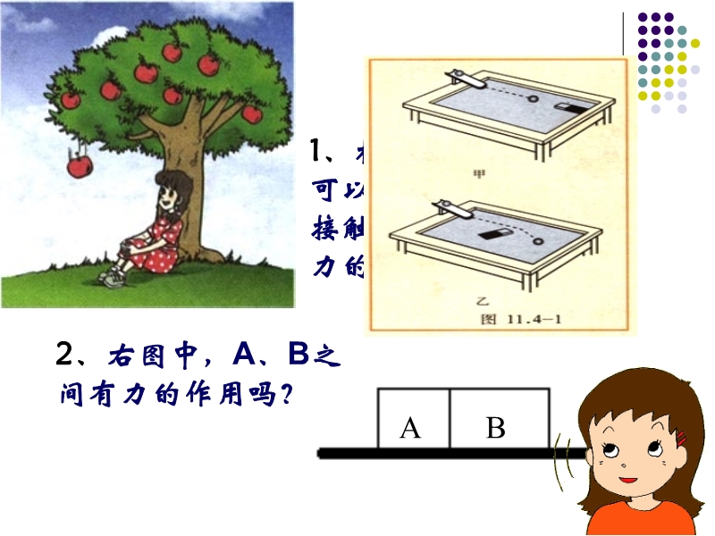 【内容简介】滑动摩擦力1.发生条件:接触,发生相对运动2.测量原理:二力平衡方法:使用弹簧测力计水平均匀拉动物体3.影响因素:压力和接触面的粗糙程度增大方法:(1)增大压力。(2)增大接触面的粗糙程度减小方法:(1)减小压力。(2)减小接触面的粗糙程度。(3)用滚动摩擦代替滑动摩擦。(4)使摩擦面分离。本节学习的重点是能认识到摩擦现象,知道影响滑动摩擦力的大小的因素,知道增大和减小摩擦的方法。 摩擦现象是日常生活中常见的一种现象,学生有一定的感性认识。教学中,要多联系生活实际,让学生从直观的感性认识出发,认识摩擦现象。探究影响滑动摩擦力大小的因素的实验,是一个完整的探究活动,因为在前面的学习中,学生已经有了一定的探究经历和能力,本节课要让学生充分体会到探究的各个环节,使学生在科学探究的过程中体会科学思想、科学方法和科学精神,培养学生的科学探究能力。