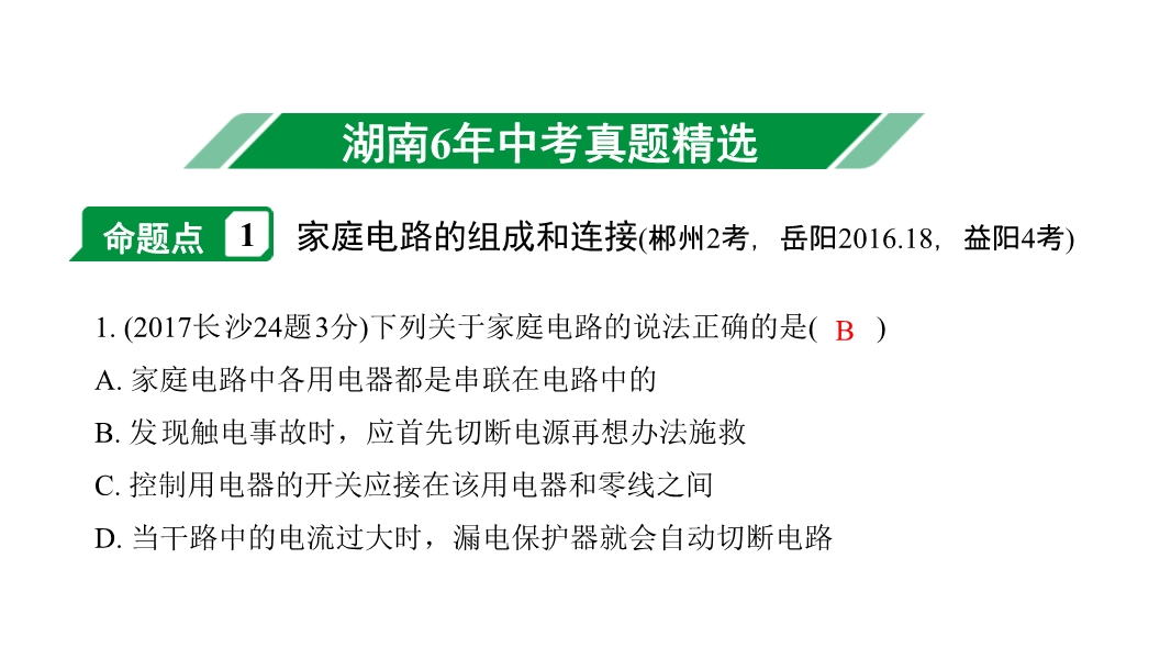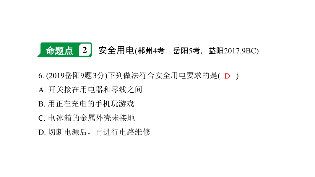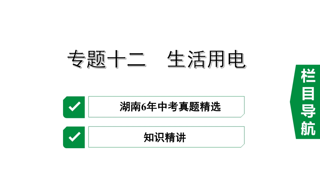 2020年湖南中考物理一轮满分攻略(课件+备考精练,含湖南6年真题):专题十二 生活用电 (共1份)