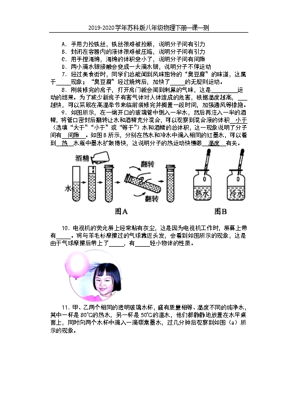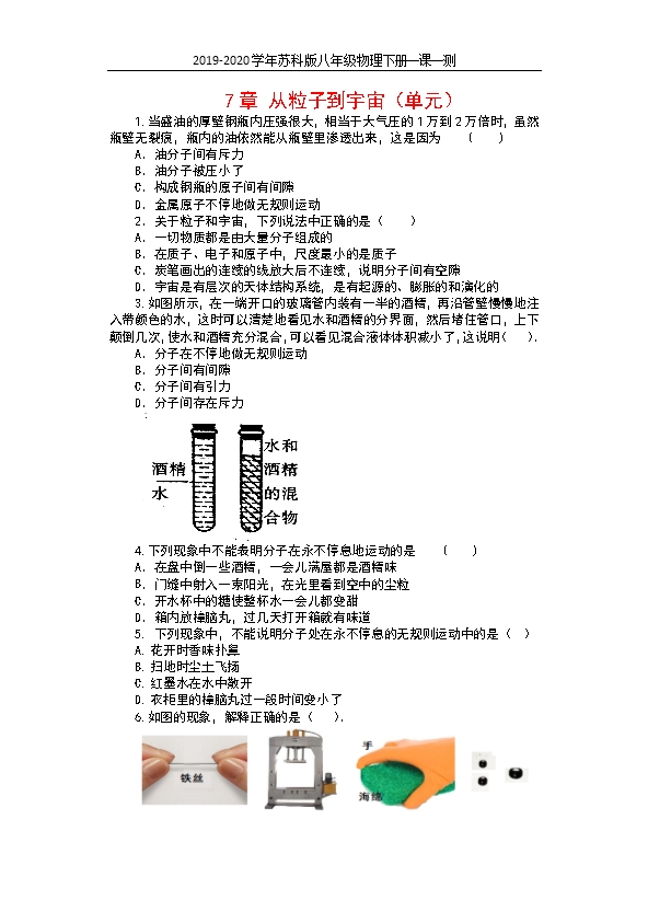 - 1502020-2021学年苏科版八年级物理下册课课练:第7章 从粒子到宇宙(单元)(附答案)