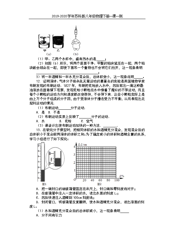 - 607(苏科版)2019-2020学年八年级物理《过关滚动单元卷》:第七章 从粒子到宇宙(滚动卷)