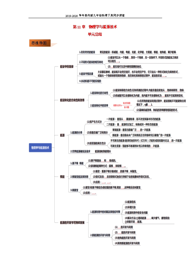 【精品】2019-2020学年教科版九年级物理下册同步课堂:第十一章 物理学与能源技术(单元总结 单元测试)