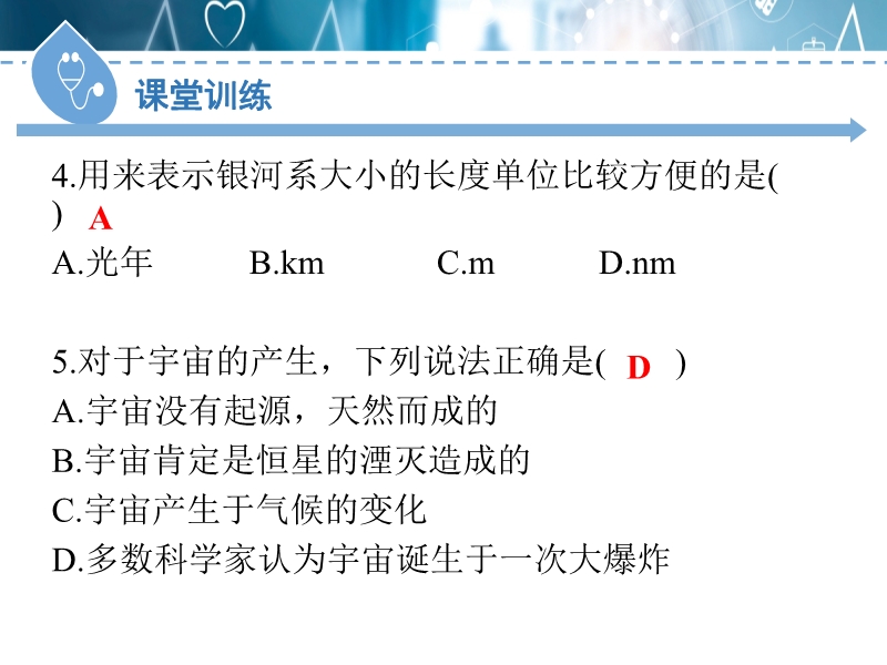 - 4412020春沪粤版八年级物理下册考点集训:10.5 宇宙深处(附答案)