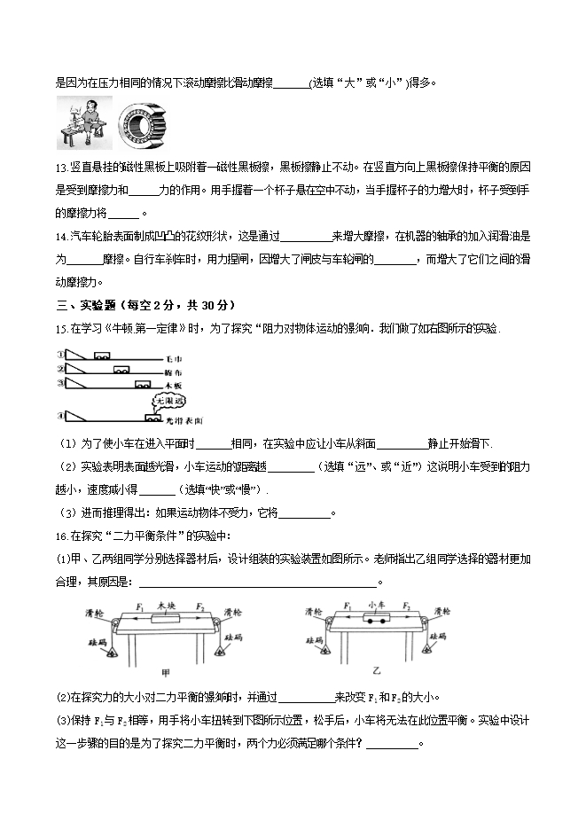 - 4252024-2025人教版八年级物理《第八章 运动和力》同步拓展提升试题及解析