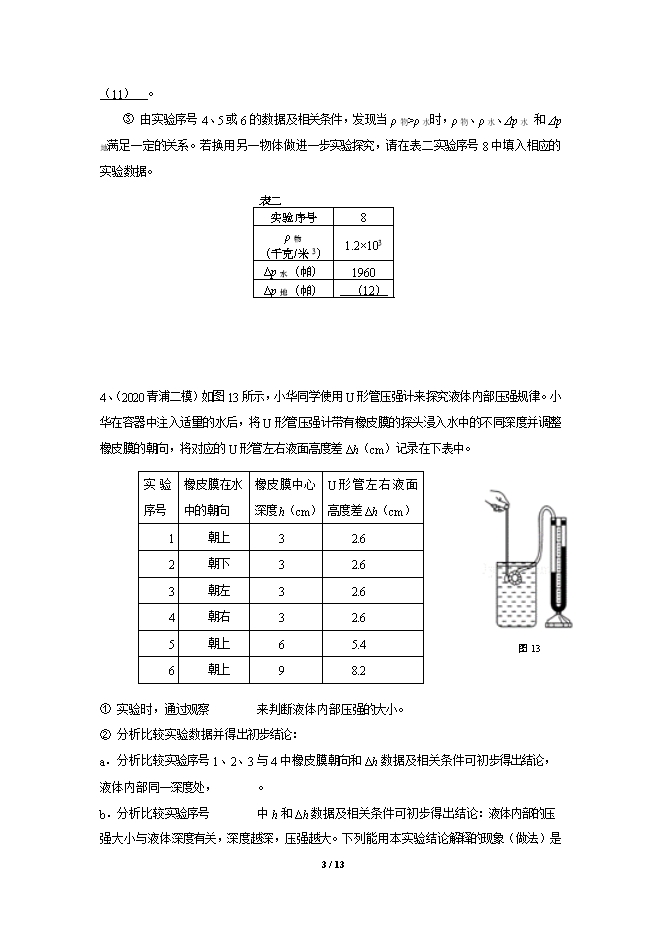 - 237【精品】2020年上海市二模物理分类汇编:08 变化压强(word版附答案)