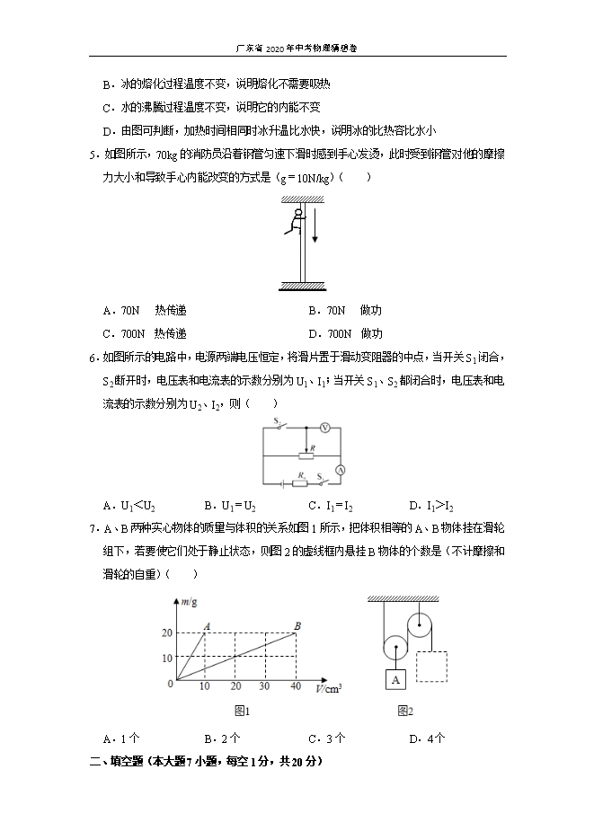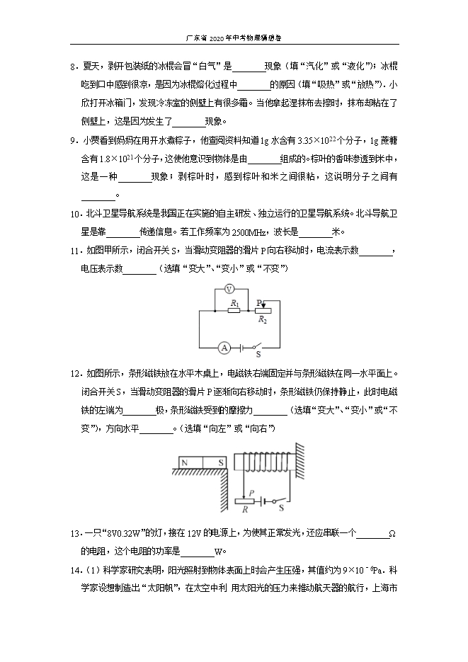 广东省2020年中考物理猜想卷(二)(原卷版和解析版)
