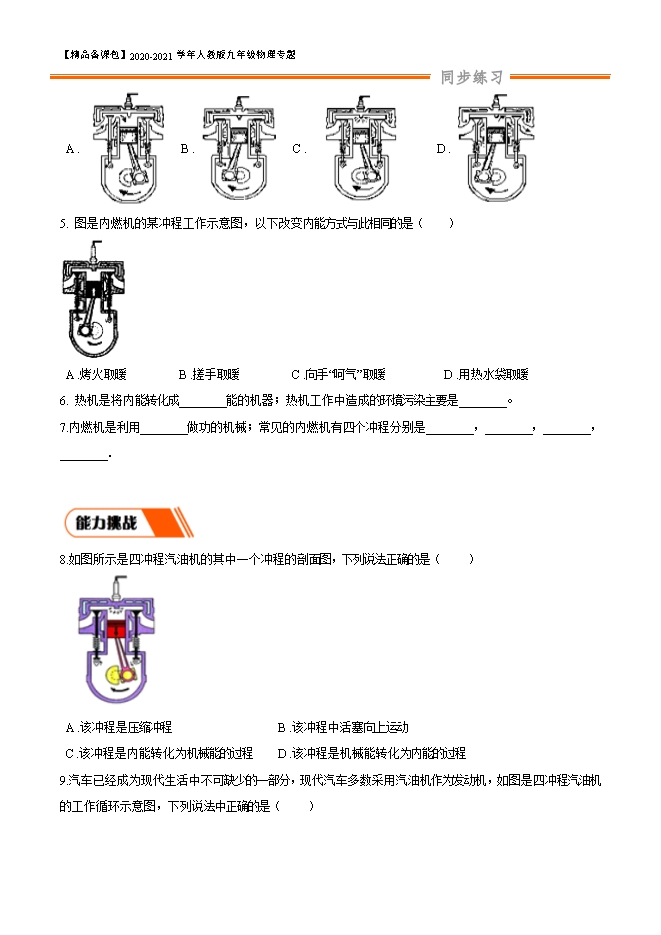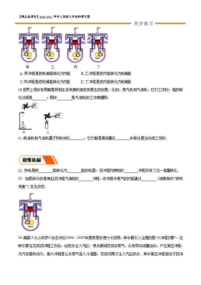 - 572023-2024人教版九年级物理同步练:《14.1热机》同步练2(附答案)