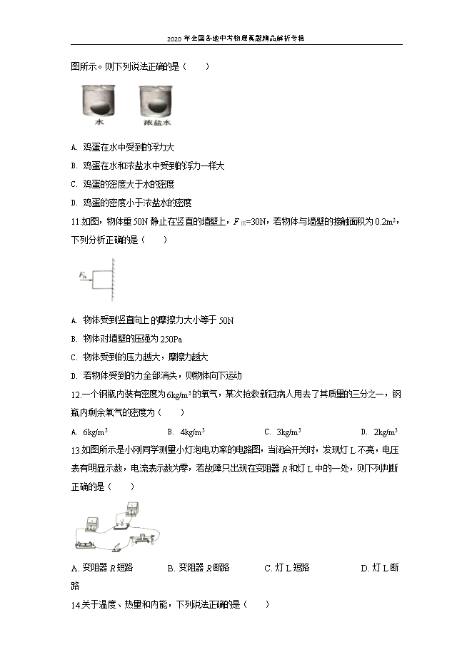 - 6442020年全国各地中考物理真题精品解析专辑:上海卷(word解析版和原卷版)
