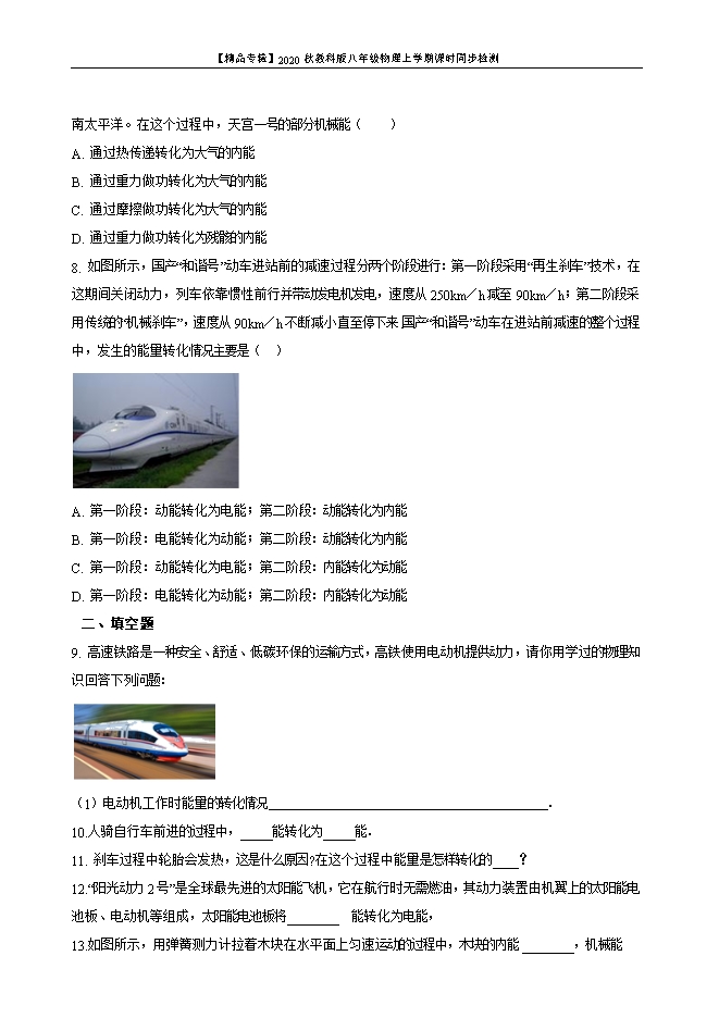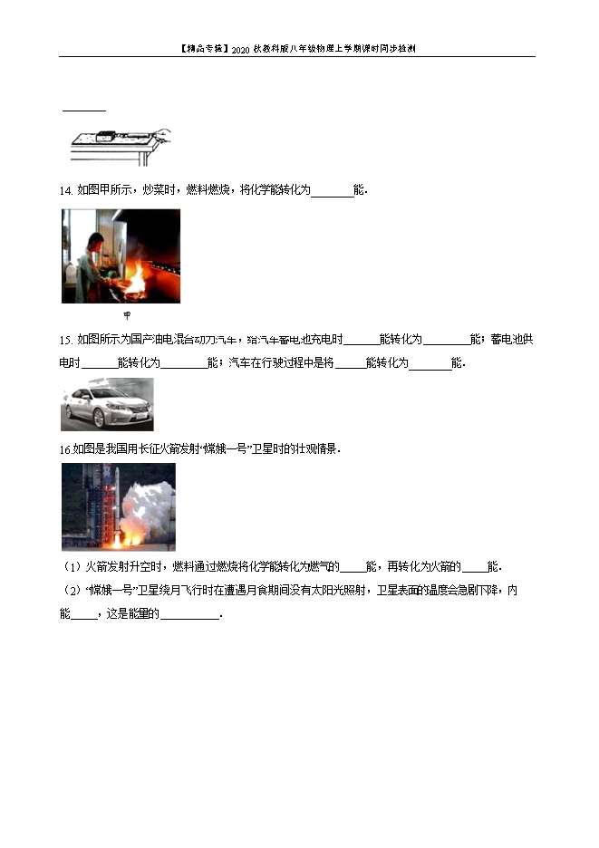 【精品专辑】2020秋教科版八年级物理上学期节节练:2.4 能量(解析版和原卷版)