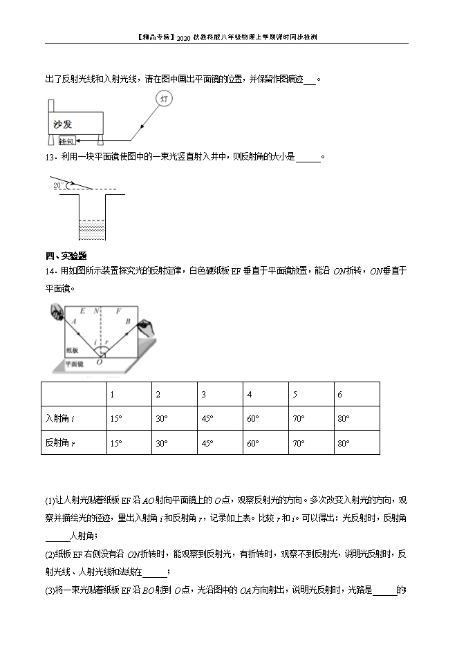 【精品专辑】2020秋教科版八年级物理上学期节节练:4.2 光的反射定律(解析版和原卷版)