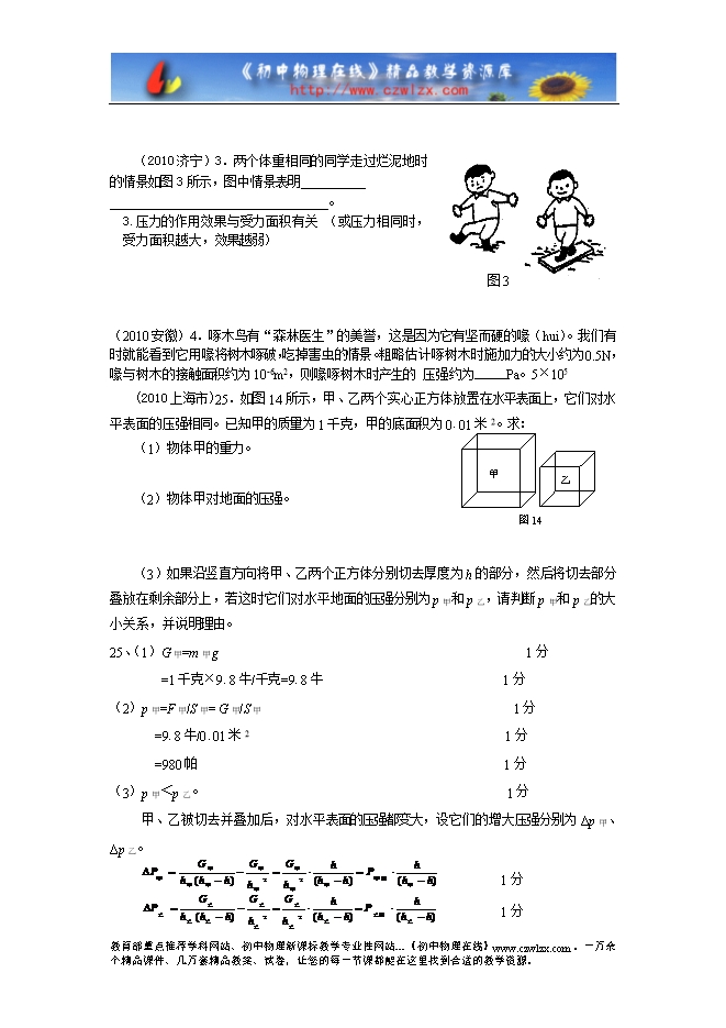 (2010济宁)3.两个体重相同的同学走过烂泥地时的情景如图3所示,图中情景表明