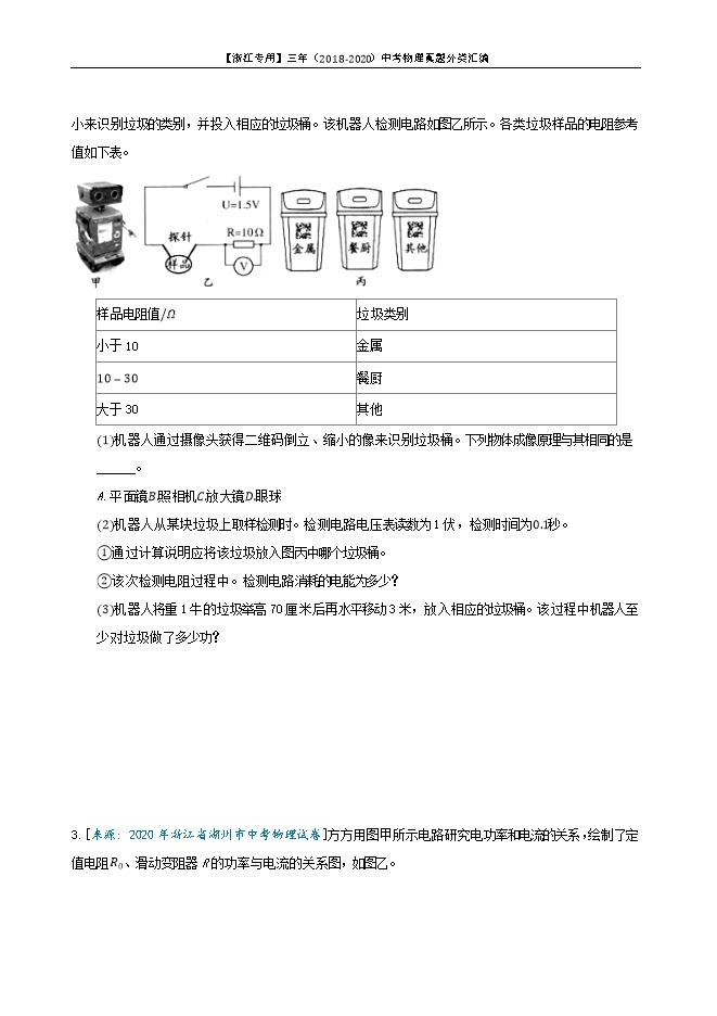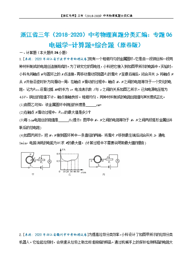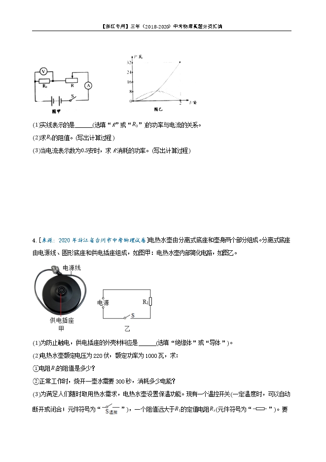 浙江省三年(2018-2020)中考物理真题分类汇编:专题06 电磁学-计算题+综合题(原卷版和解析版)