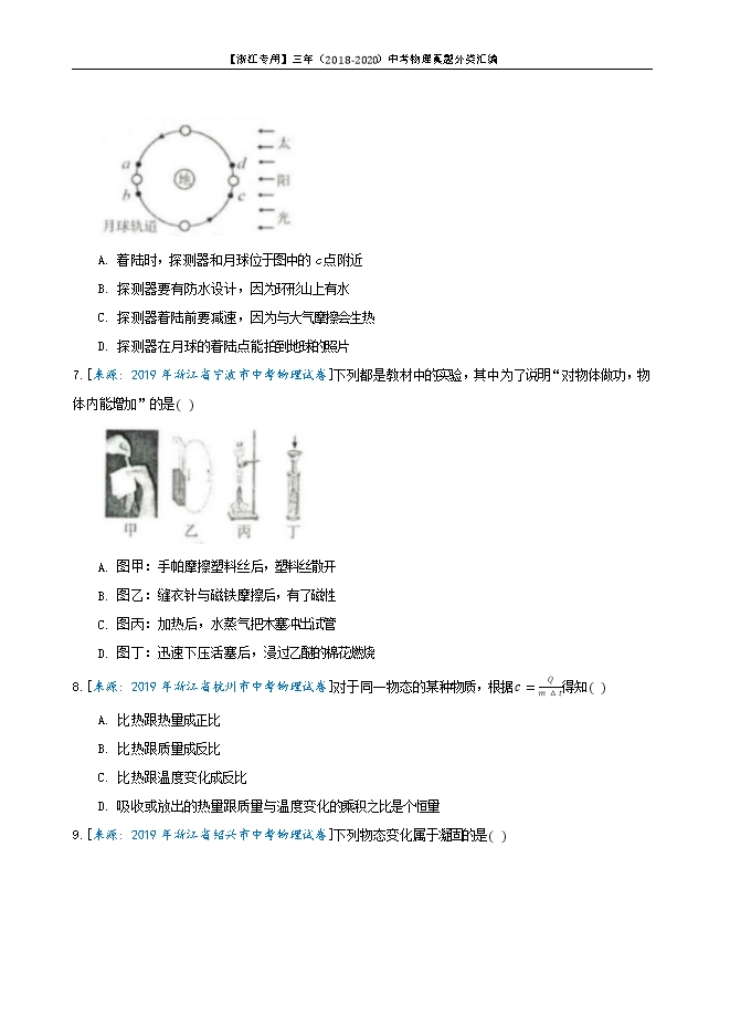 浙江省三年(2018-2020)中考物理真题分类汇编:专题08 热学(原卷版和解析版)