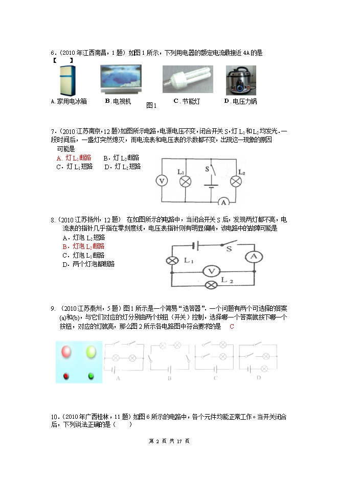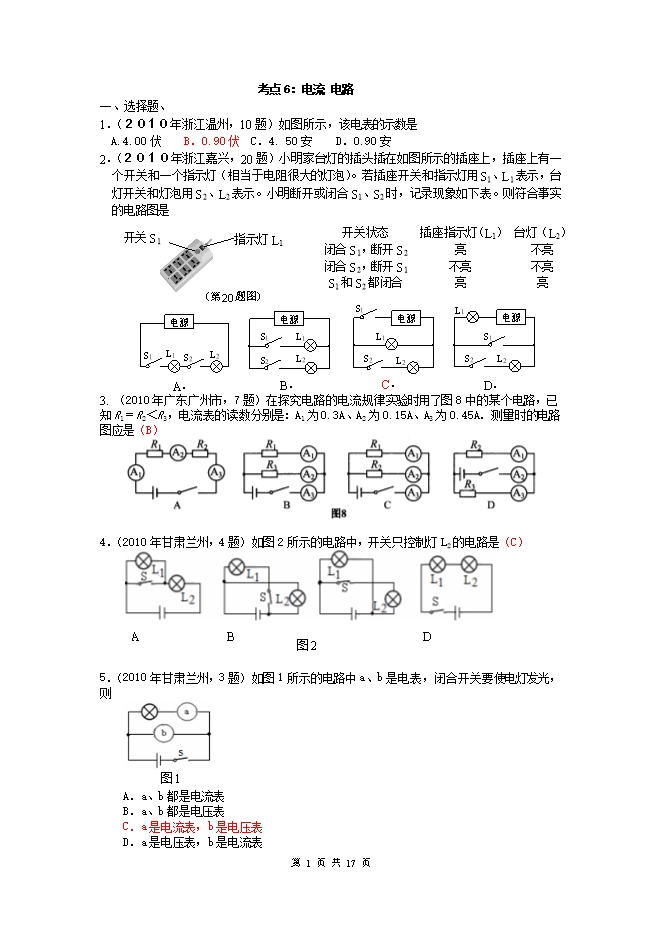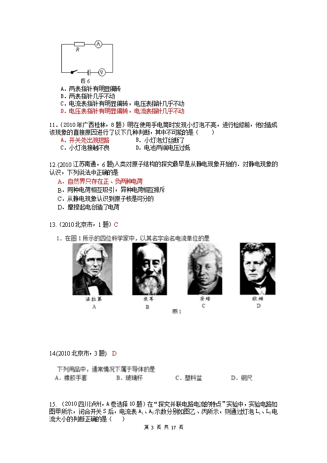 2010中考物理试题分类汇编(93套)专题六--电流 电路
