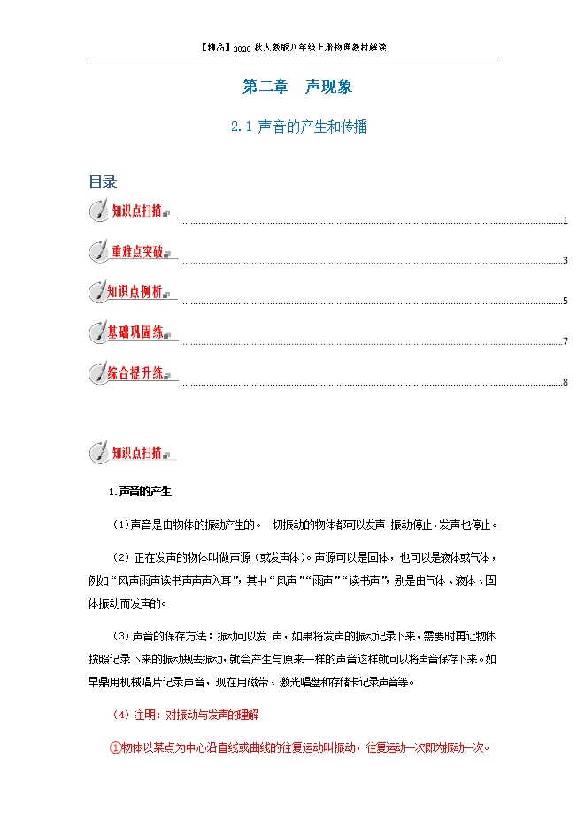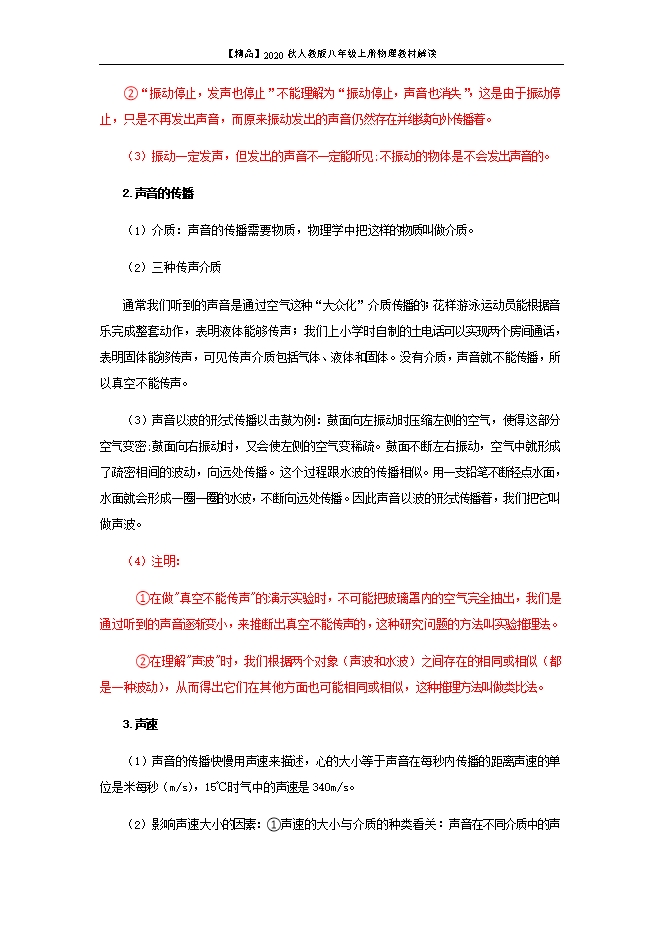 【精品】2020秋人教版八年级上册物理教材解读:2.1 声音的产生和传播(原稿版和解析版)