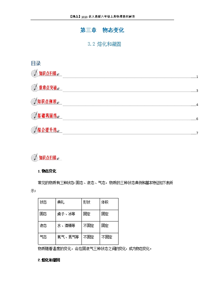 【精品】2020秋人教版八年级上册物理教材解读:3.2 熔化和凝固(原稿版和解析版)