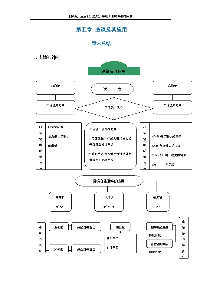 【精品】2020秋人教版八年级上册物理教材解读:第五章 透镜及其应用 章末总结(原稿版和解析版)