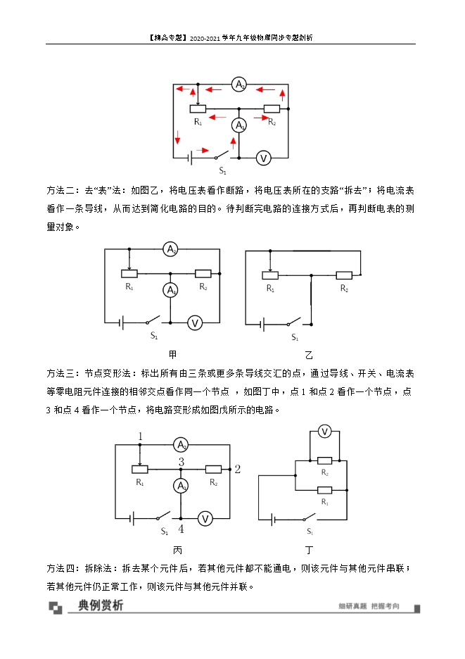 【内容简介】1.一支体温计的示数是38℃,若粗心的护士仅消毒后就直接用它去测量甲、乙两个病人的体温,体温计的示数先后分别是38℃和39℃,则下列判断正确的是( )。A.甲的体温是38℃,乙的体温是39℃;B.甲的体温低于38℃,乙的体温是39℃;C.甲的体温不高于38℃,乙的体温是39℃;D.因为体温计使用前没有向下甩,所以甲、乙两人的体温无法确定【答案】C。【解析】本题考查对体温计构造中缩口作用的了解。解题的关键是知道体温计独特的缩口结构使缩口上面玻璃管中的水银不能自动回到玻璃泡中,要使升到玻璃管中的水银再回到玻璃泡中,要拿着体温计用力向下甩。若没有甩就直接测体温,则其温度只能上升,不能下降,即能测出高于38℃的人体温度,而不能确定甲的温度是38℃,故选C。2.如图所示是一支常用体温计。下列关于该体温计的说法中,正确的是( )。 A.它的示数是8℃;B.它的分度值是1℃;C.它不能离开被测物体读数;D.它是根据液体热胀冷缩的性质制成的【答案】D。【解析】本题考查对体温计构造、原理、分度值、读数等方面的掌握情况。体温计的示数是38℃,A错;体温计的分度值是0.1℃,B错;体温计由于结构中有缩口,可以离开被测物体读数,C错;体温计是根据液体热胀冷缩的性质制成的,D对。选D。3.图中读数方法正确的是( )。 A.a B.b C.c D.都不正确【答案】B。【解析】对温度计进行读数时,要求视线和温度计内液柱上表面保持相平;从图中给出的几种情况看,B正确。故选B。4.-20℃的正确读法是( )。A.零下20度 B.零下摄氏20度 C.负摄氏20度 D.零下20摄氏度【答案】B。【解析】“-20℃”有两种读法,可以读作“零下20摄氏度”,也可以读作“负20摄氏度”。故选B。5.有两支用后没有甩过的体温计读数都是37.2℃,再用它分别测甲、乙二人的体温,结果甲的体温计示数为37.2℃,乙的示数为37.4℃,那么这二人的体温( )。A、甲的体温一定是37.2℃;乙的体温是37.4℃;B、甲的体温小于37.2℃,乙的体温小于37.4℃;C、甲的体温可能小于37.2℃,乙的体温是37.4℃;D、二人的体温都无法确定【答案】C。【解析】有甩过的体温计读数原来的示数都是37.2℃,拿去测甲的体温后显示仍是37.2℃,说明甲的体温不高于37.2℃;而拿去测乙的体温显示为37.4℃,即体温计示数上升了,说明乙的体温就是37.4℃。故选C。6.用一支示数不准确的温度计测量冰水混合物的温度,示数为-2℃;用它测量一标准大气压下沸水的温度,示数为103℃;用它测量某种液体的温度,示数为19℃,则该液体的实际温度为( )。A.16.2℃ B.18.1℃ C.19℃ D.20℃【答案】D。【解析】设室温的实际温度是t℃,由题意得:[103℃﹣(﹣2℃)]÷100×t+(﹣2℃)=19℃,解得:t=20℃。故选D。7.关于体温计和实验室用温度计的异同点,下面哪种说法不正确?A.体温计示数的准确程度比实验室用温度计要高;B.体温计玻璃管的内径有一弯曲处特别细,实验室用温度计没有;C.体温计可以离开被测物体测量,实验室用温度计也可以离开被测物体测量;D.体温计可以用力甩动使水银回到玻璃泡中,实验室用温度计不能用力甩【答案】C。【解析】A、体温计的分度值是0.1℃,实验用温度计的分度值是1℃,所以体温计示数的准确程度比实验室温度计要高;故A正确。B、结构上:体温计有缩口,实验用温度计没有;故B正确。C、体温计可以离开被测物体读数,实验用温度计不能离开被测物体读数.故C不正确。D、使用前:体温计要甩一甩,实验用温度计不能甩.故D正确。故选C。8.水银温度计中封闭着一定量的水银,在用这种温度计测量温度的过程中,下列说法正确的是( )。A.温度计中水银的质量不变;B.温度计中水银的体积不变;C.温度计中水银的高度不变;D.温度计中水银的温度不变