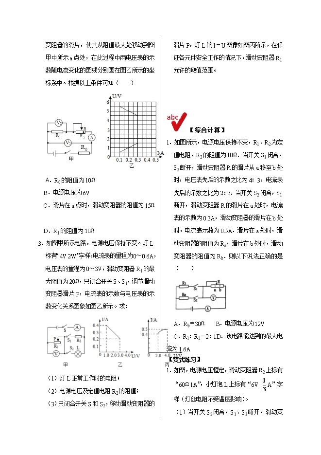 [精品]第8讲 欧姆定律的运用二--2020-2021学年九年级上学期物理期末复习讲义16讲(通用版)