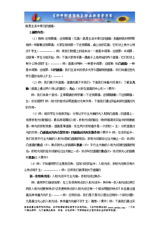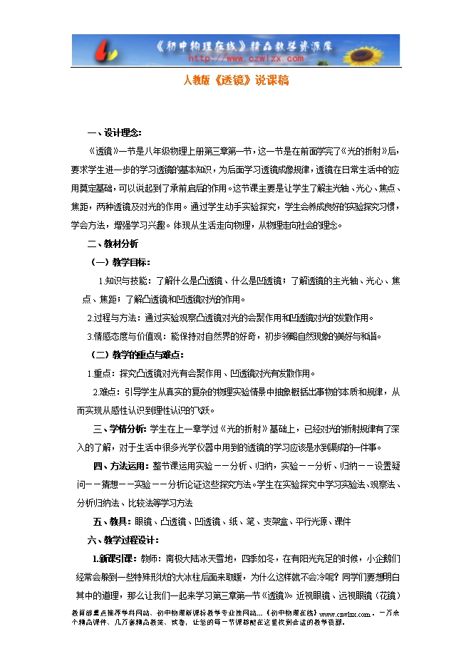 - 下一份资料:人教版《生活中的透镜》说课稿