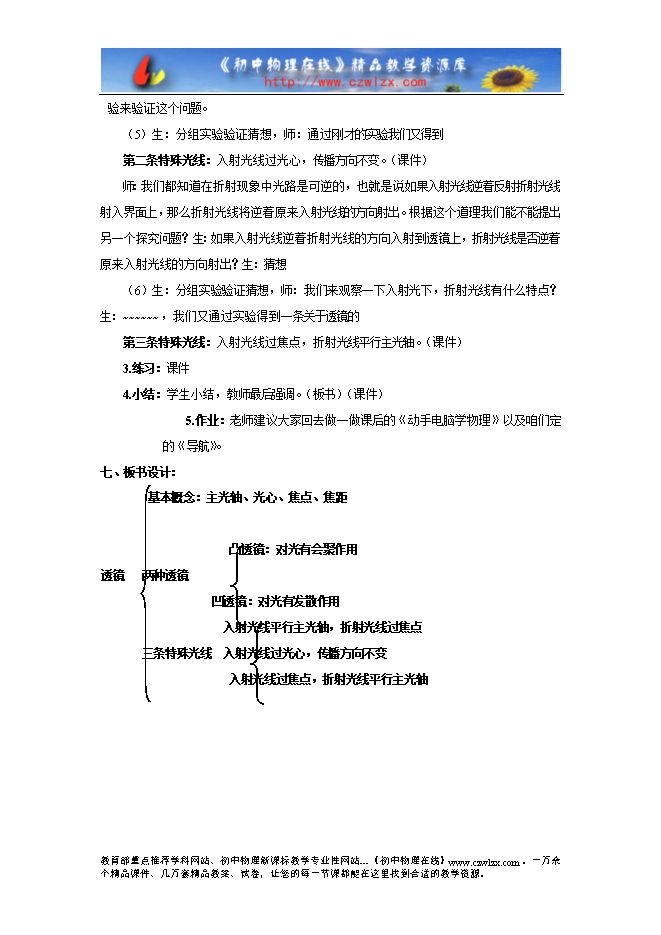 2.过程与方法:通过实验观察凸透镜对光的会聚作用和凹透镜对光的发散作用。