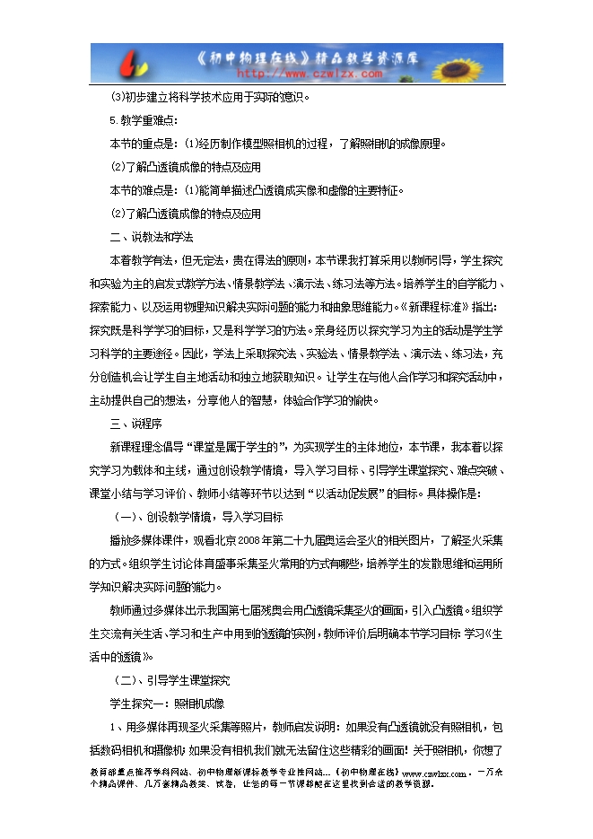 - 下一份资料:人教版《探究凸透镜成像的规律》说课稿