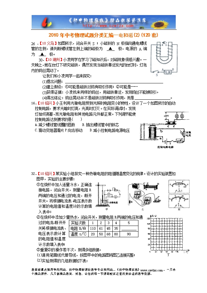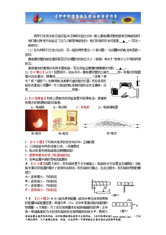 2010年中考物理试题分类汇编--电和磁(2)(120套)